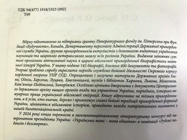 Довідково: Історико-бібліографічне видання «Офіцери окремого корпусу кордонної охорони Української народної